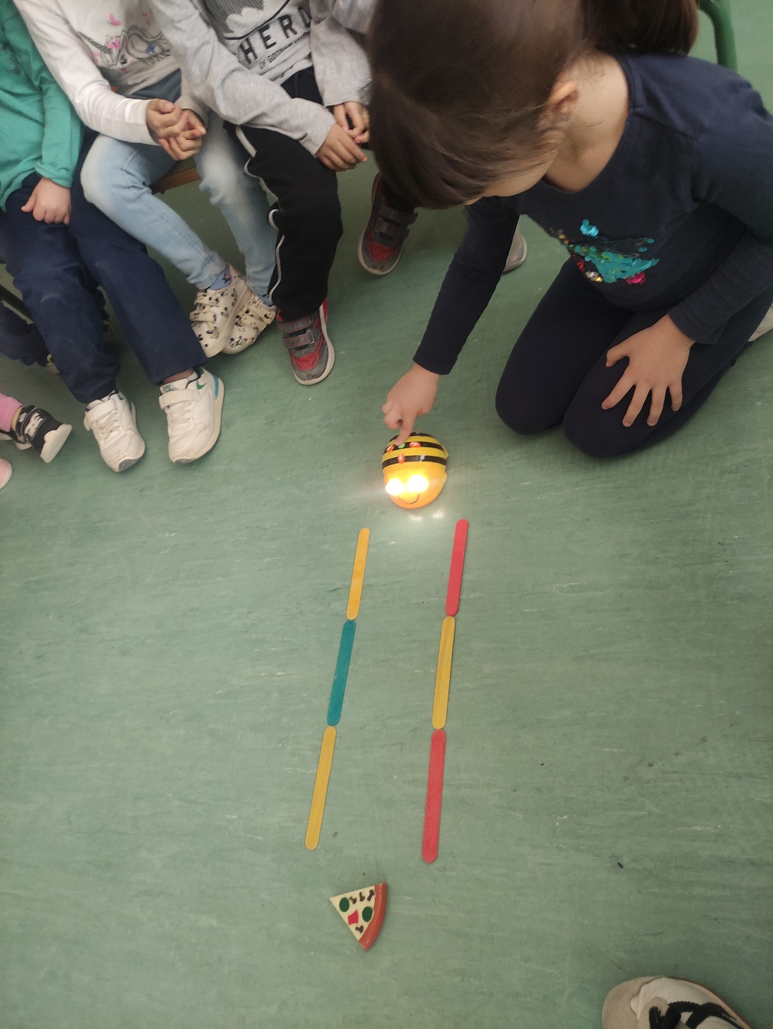 Para el desarrollo de esta competencia, en las aulas de Infantil de nuestro colegio hemos incorporado este curso una sesión semanal de ROBÓTICA, en las que contamos con un Bee-Bot: un pequeño robot educativo con forma de abeja diseñado para desarrollar capacidades elementales de programación robótica.